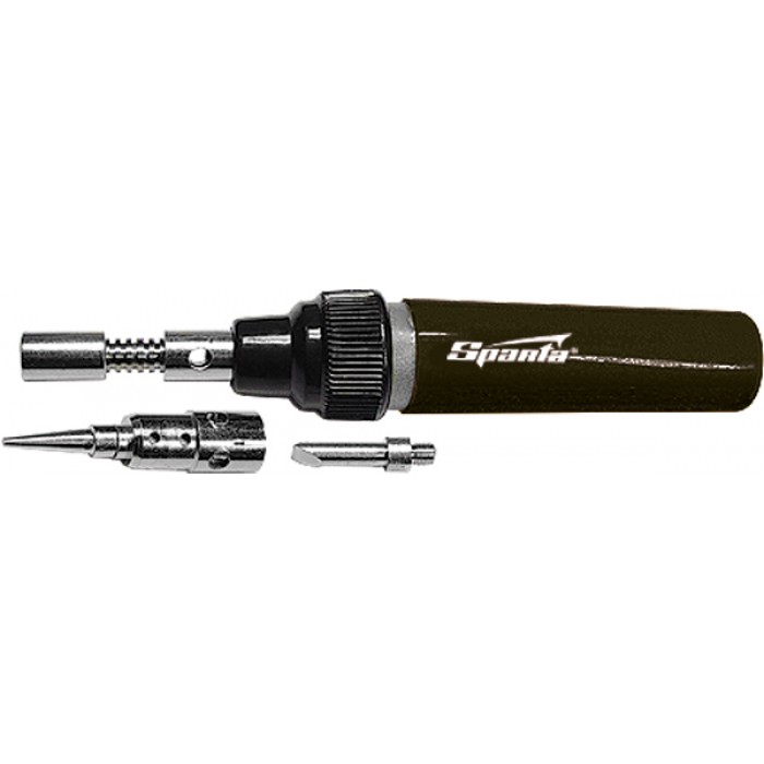 Зручна портативна газовий пальник загального призначення. Заправка здійснюється за допомогою звичайного балончика для заправки запальничок. Створює стійке, не схильне впливу вітру і дощу полум'я температурою близько 1300 ° C. У комплект входить дві насадки для пайки.