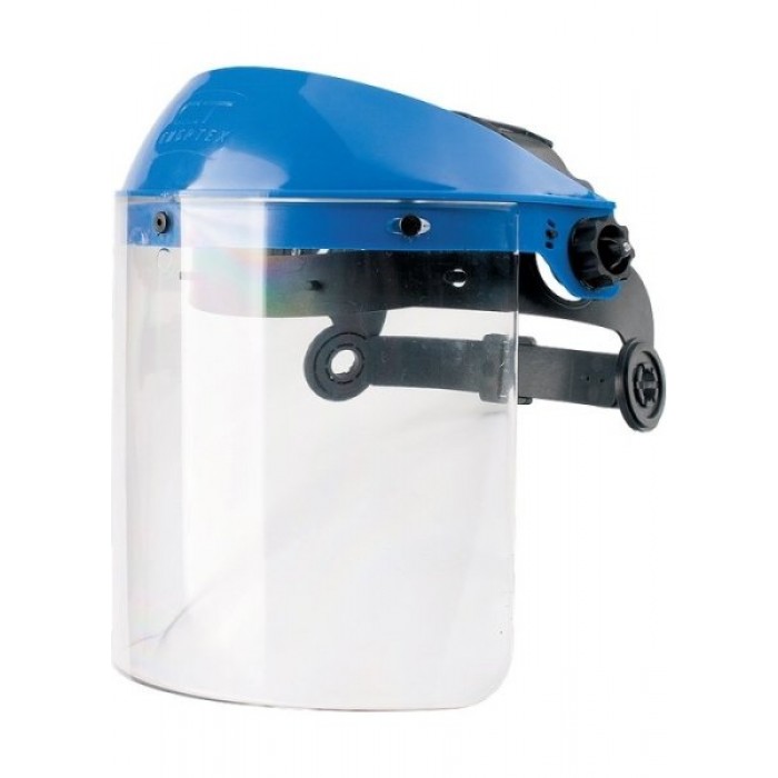 Захисний лицьовий щиток з екраном з полікарбонату, розміром 300х200 мм, товщиною 2 мм, використовується для запобігання працівника від летять частинок при проведенні будівельних і монтажних робіт. Ефективно захищає обличчя від іскор при роботі болгаркою, при роботі перфоратором або відбійником і в інших роботах.