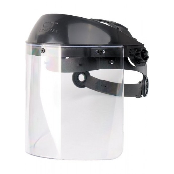Захисний лицьовий щиток з оптично прозорого полістиролу, розміром 300х200 мм, товщиною 2 мм, стійкий до впливу іскор і бризок розплавленого металу, високих температур, подряпин і стирання. Використовується для запобігання особи працівника від летять частинок при проведенні будівельних і монтажних робіт. Ефективно захищає обличчя від іскор при роботі болгаркою, від розлітаються каменів при роботі перфоратором або відбійником і в інших роботах.