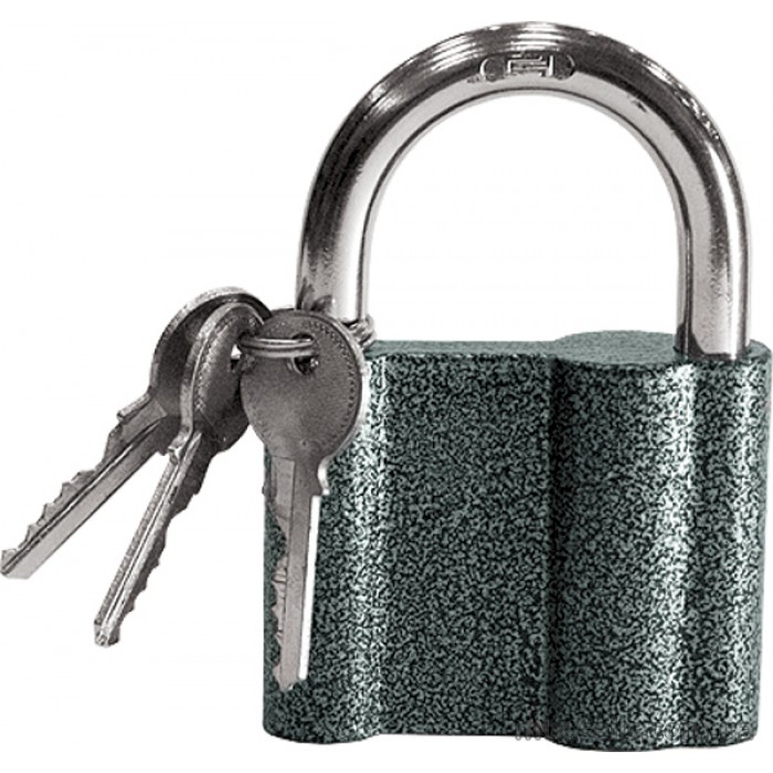 Замок легкий особливої міцності з алюмінієвим корпусом і сталевий загартованої дужкою. Призначений для замикання дверей різних приміщень. Циліндровий запірний механізм ускладнює можливість злому замка. У комплект входить 3 плоских двосторонніх ключа.