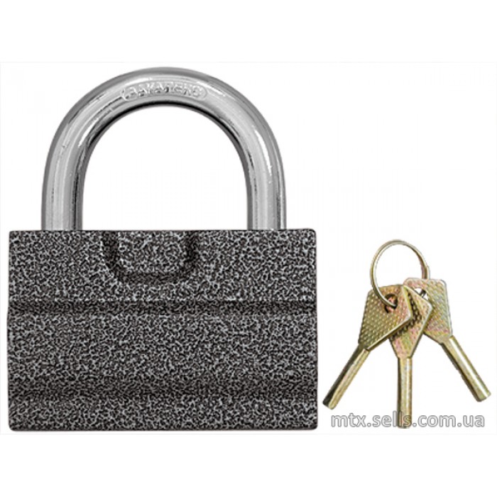 Замок підвищеної захищеності зі сталевим корпусом і сталевий загартованої дужкою. Призначений для захисту відповідальних приміщень: гаражів, складів, магазинів. Має широкий отвір дужки, що дозволяє використовувати їх і для дверей з великою відстанню між вушками. Механізм секрету розташований збоку. У комплекті 3 ключі.