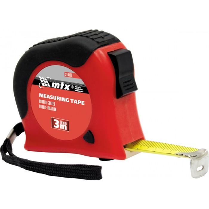 Рулетка Double fixation, 5 м х 19 мм, прогумований корпус, подвійна плавна фіксація// MTX