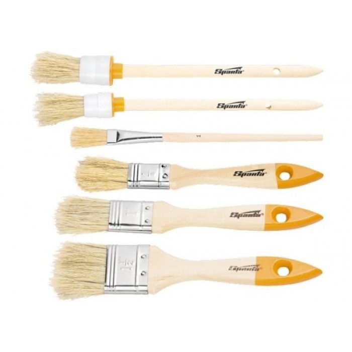 Набір пензлів, 6 шт.(плоскі 3/4 ", 1", 1/5 "; Круглі № 1, № 2,№ 4.)// SPARTA