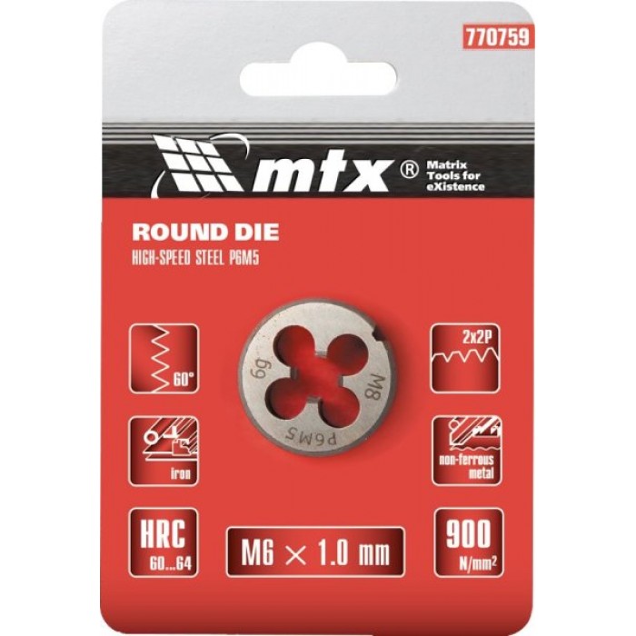 Виконані з швидкорізальної сталі Р6М5, мають твердість 60 ... 64 HRc. Клас точності за міжнародним стандартом 6g. Мають підвищену стійкість до зношування. Мають Заходне конус з обох сторін, що значно збільшує термін служби інструменту. Упаковка, що містить всю необхідну інформацію про продукт, полегшить покупцеві вибір необхідного товару.