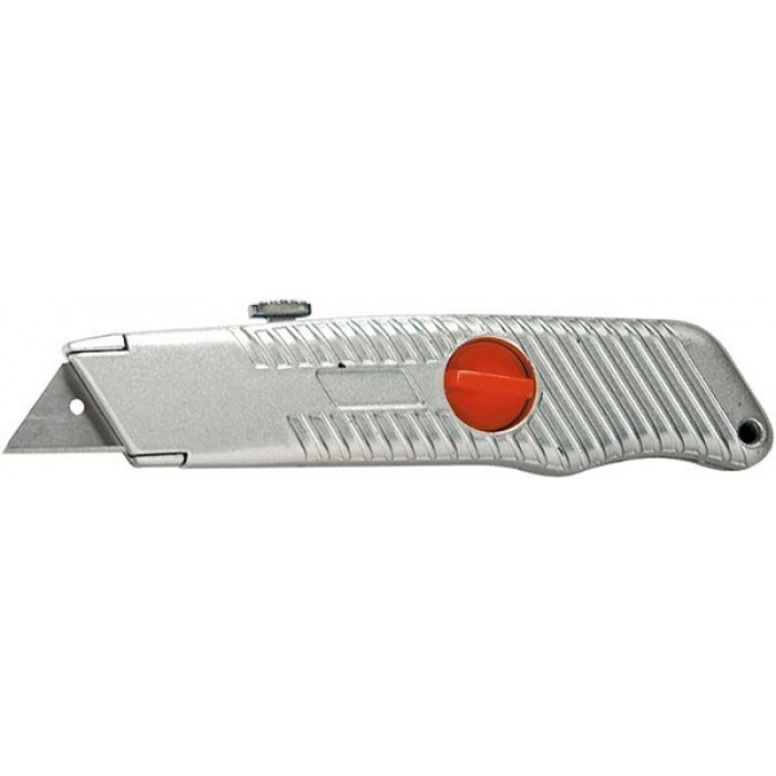 Універсальний ніж з висувним змінним трапецієподібним лезом. Ергономічна металева рукоятка складається з двох частин, закріплених пластмасовим гвинтом, автоматична фіксація леза. Використовується для розрізання паперу, картону, лінолеуму та інших матеріалів із застосуванням значних зусиль.