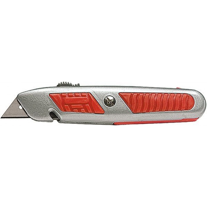 Універсальний ніж з висувним змінним трапецієподібним лезом. Металевий корпус. Для підвищення безпеки при перерізанні шнура, мотузки, шпагату без висунення леза в корпусі є спеціальний паз. Автоматична фіксація леза. Має відділення для запасних лез.