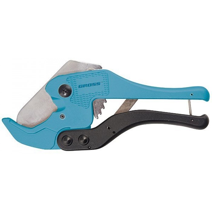 Ножиці торгової марки GROSS призначені для різання пластикових труб, плінтусів, профілів, гумових шлангів та ін. Діаметром до 42 мм. Пряма форма робочого ножа дозволяє різати і плоскі вироби з вищевказаних матеріалів. Корпус ножиць з надміцного алюмінієвого сплаву, лезо з високовуглецевої сталі SK2 і вдосконалений механізм хропіння дозволяють віднести інструмент до професійної лінійці.