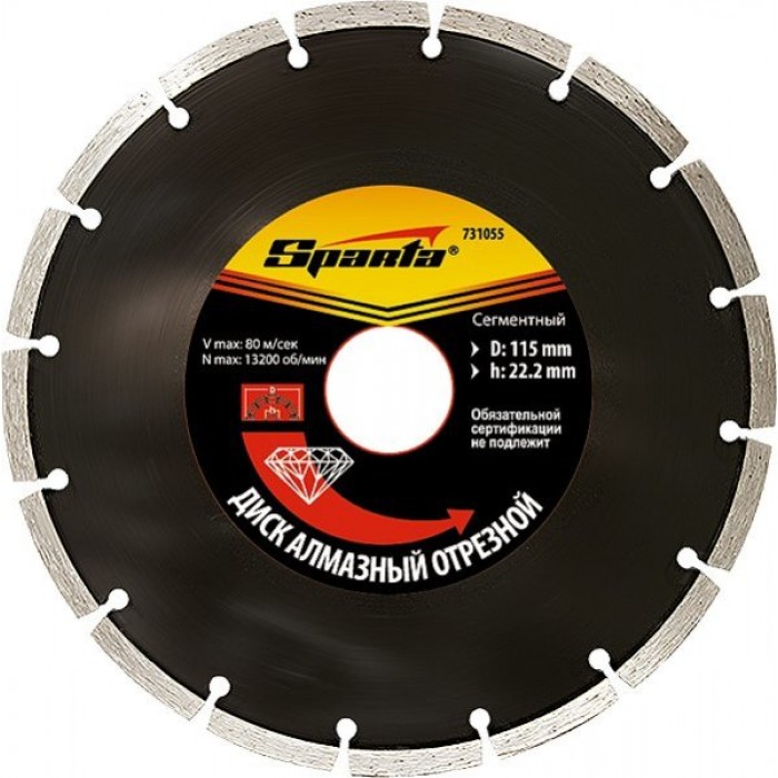 Високий ресурс різу забезпечується діамантовою крихтою і оптимально підібраної зв'язкою. Завдяки наявності «прорізів» сегментів в диску процес обробки здійснюється з ефективним викидом продуктів різання. Диск використовується при сухій різання бетону, цегли.