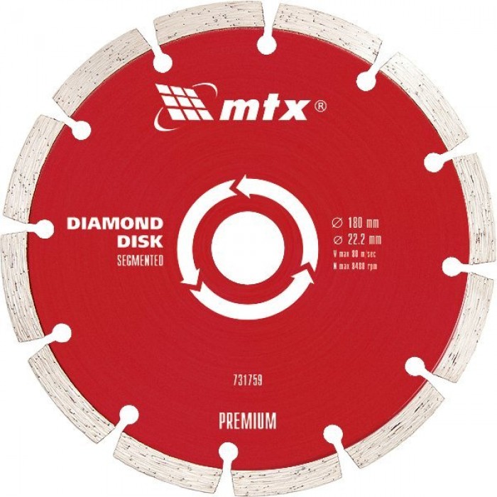 Диск алмазний відрізний сегментний, 180 х 22,2 мм, сухе різання // MTX PROFESSIONAL