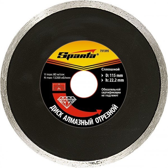Диск алмазний відрізний суцільний, 115 х 22,2 мм, волога різка// SPARTA