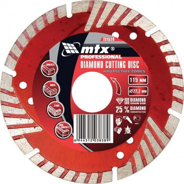 Диск алмазний відрізний сегментний з захисними сект, 180 х 22,2 мм, сухе різання// MTX PROFESSIONAL
