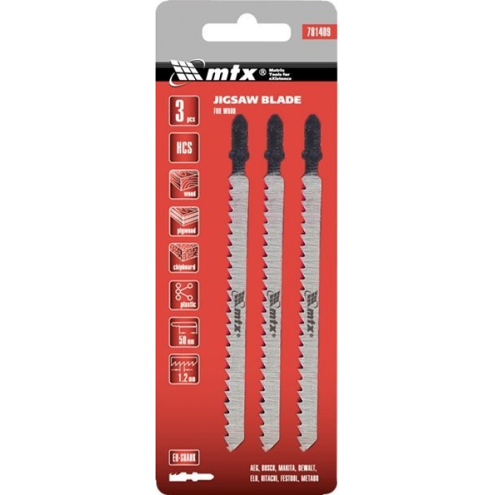 Набір пил для електролобзика по дереву, 3 шт., 100 х 4 мм, HCS, EU-хвостовик// MTX