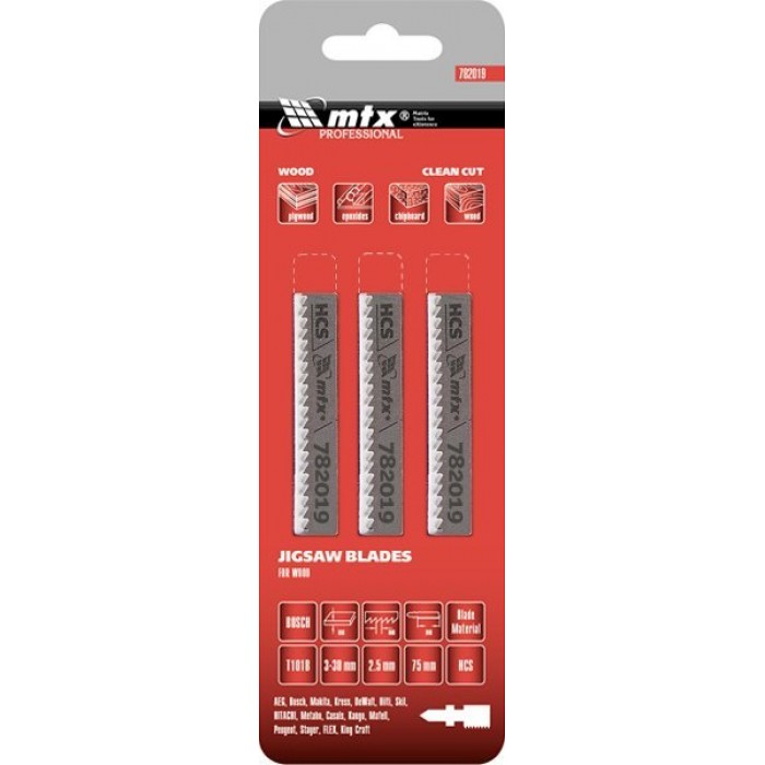 Полотна для електролобзика по дереву, 3 шт. T101B, 75 х 2.5мм, HCS// MTX PROFESSIONAL