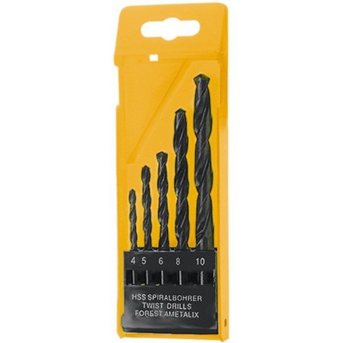 У набір входять свердла 4-5-6-8-10 мм. Свердла по металу виготовлені з швидкорізальної сталі (HSS). Упаковані в пластиковий пенал.
