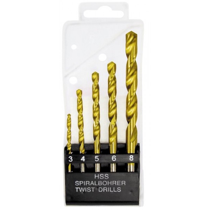 Набір нітридтітан. свердел по мет., 3-4-5-6-8 мм, HSS, 5 шт., пластик. коробка, циліндр. хвост.//MTX