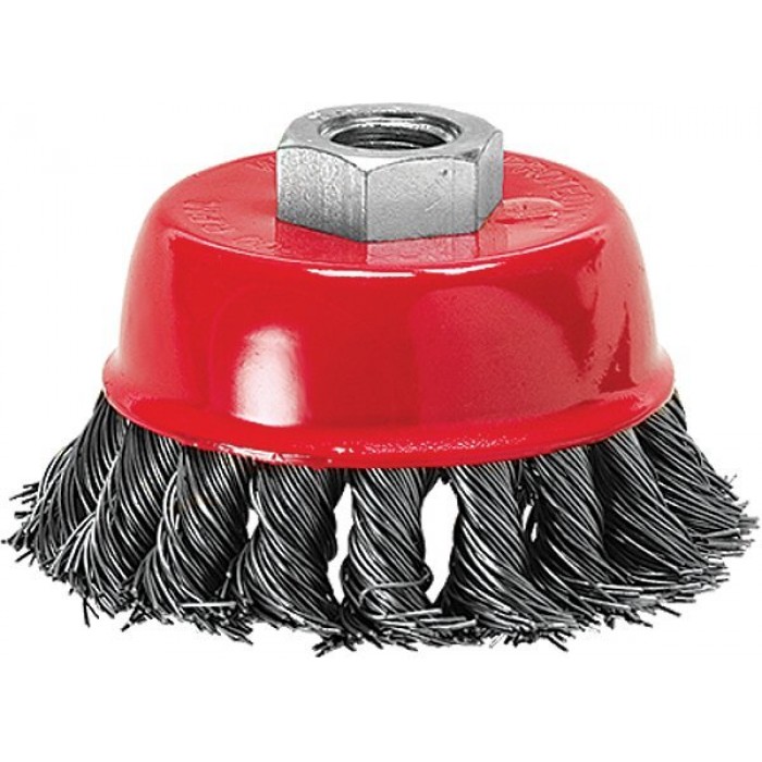 Щітка виготовлена з крученої сталевого дроту. Застосовується для грубого очищення металевих поверхонь від іржі, бруду і зачистки зварних швів. Тип посадки - М14.