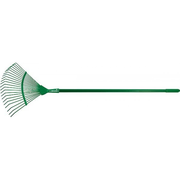 Граблі віялові пофарбовані, 22 круглих зуба, охоплення робочої частини 415 мм. Металевий пофарбований держак завдовжки 1200 мм з гумовою ручкою на конце.Предназначени для збору опалого листя, зрізаних гілок, бур'янів, садового сміття. Зуби виконані з пружинного стали 65Г і мають підвищену жорсткість, що забезпечує зручність у роботі. Забарвлення зубів захищає від корозії.