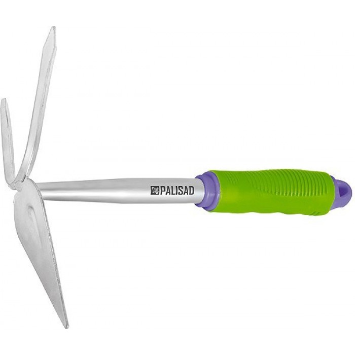 Мотижки комбінована, профіль & quot; пелюстка & quot; і 2-зубая, з обрезиненной рукояткою, яку при необхідності можна подовжити. Ширина робочої частини 80 мм, загальна довжина 290 мм. Призначена для розпушування, аерації ґрунту і прополки на невеликих грядках і клумбах. Робоча частина виконана з інструментальної сталі У8 і забарвлена ??порошковою емаллю для запобігання від корозії. Рукоятка виконана з обгумованого пластика, в торці рукоятки є гвинтова заглушка, викрутивши яку можна подовжити інструмент на 500 мм за допомогою штанги 63016 і на 800 мм за допомогою штанги 63017. Після закінчення роботи необхідно очистити робочу частину інструменту від залишків грунту.