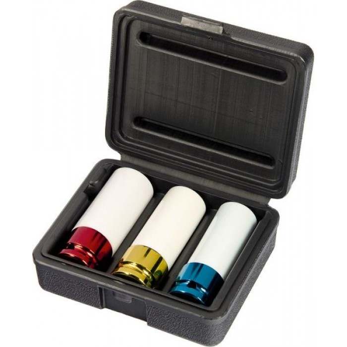 Професійний комплект з 3 головок, виготовлених з хромомолібденової сталі. Застосовуються в Пневмоінструменті для монтажу / демонтажу колісного кріплення.