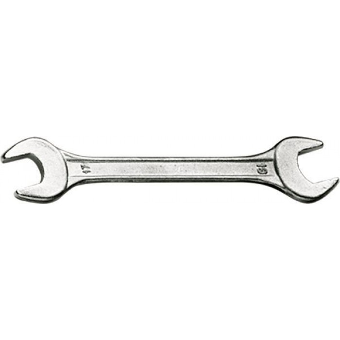 Ключ гайковий двосторонній з відкритим зевом виготовлений з вуглецевої сталі. Твердість матеріалу робочої частини ключа 42 HRc (вимоги ГОСТ - 41-46 HRc). Має надійне захисне покриття з хрому. Призначений для монтажу демонтажу різьбових з'єднань.