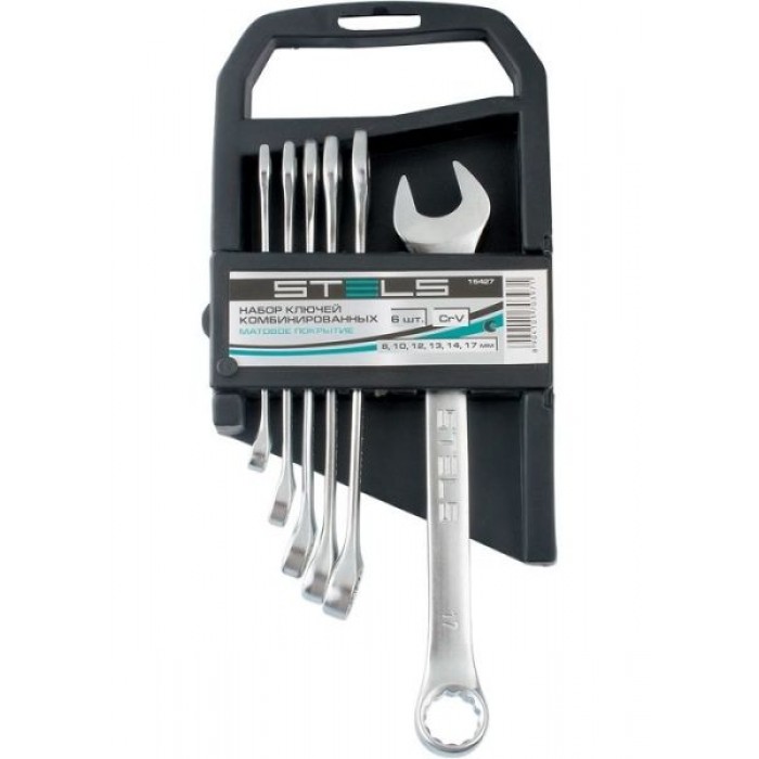 Набір ключів комбінованих, 8 - 17 мм, 6 шт., CrV, матовий хром// STELS