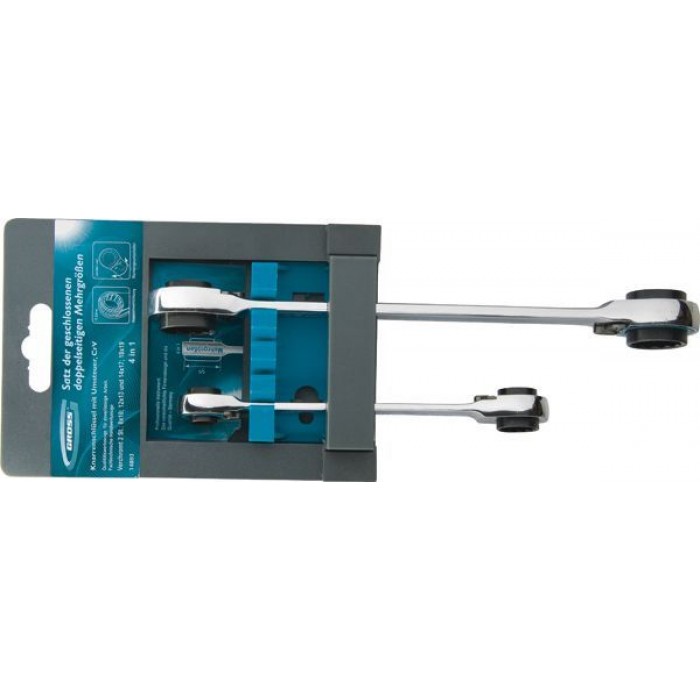 Набір ключів накидних з трещіткою, 8 - 19 мм, 2 шт., багаторозмірні, реверсивні, CrV// GROSS