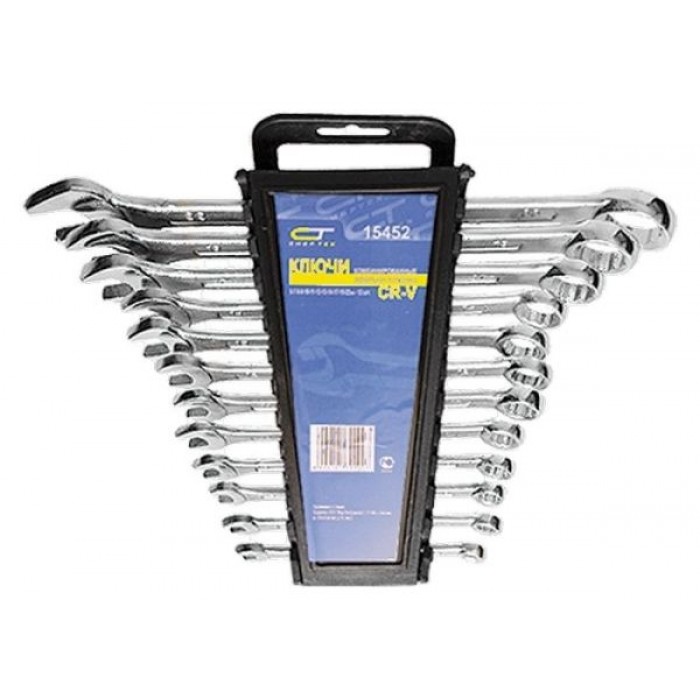 Ключі виготовлені з хромванадієва сталі. Твердість матеріалу робочої частини ключа 45 HRc (вимоги ГОСТ - 45-51 HRc). Ключі мають хромоване покриття. Профіль кільцевого зіву має 12 граней, що збільшує площу зіткнення робочих поверхонь і знижує ризик деформації граней кріплення при монтажі. Кут нахилу кільцевого зіву щодо площини ключа в 15 градусів робить монтаж більш зручним. Ключі поставляються в комплекті з трапецієподібним пластмасовим утримувачем. Набір призначений для монтажу демонтажу різьбових з'єднань.