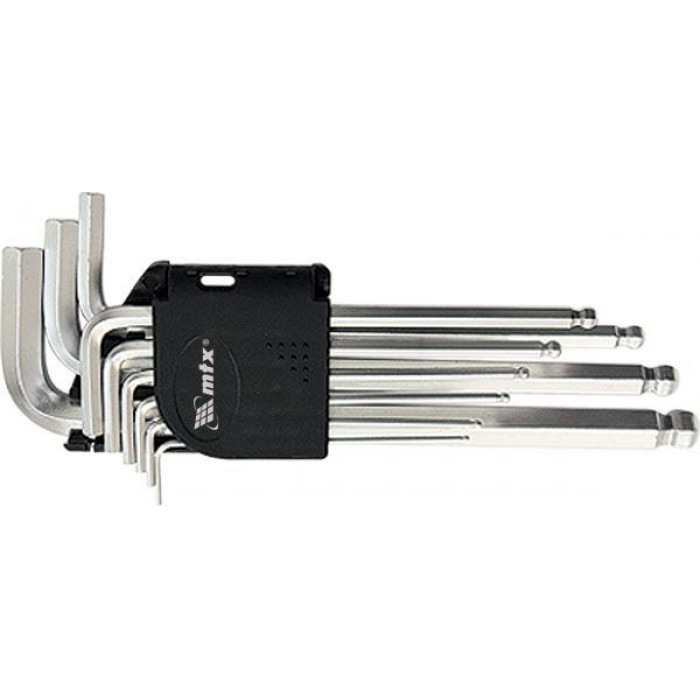 Набір ключів імбусових HEX, 1,5–10 мм, CrV, 9 шт., подовжені, з кулею// MTX