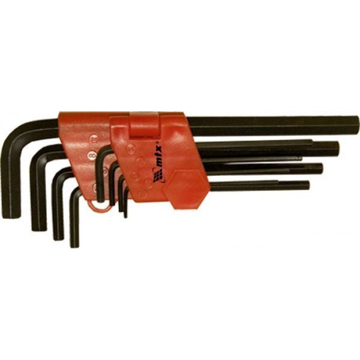 Набір ключів імбусових HEX, 1,5-10 мм, CrV, 9 шт., оксидовані, подовжені// MTX