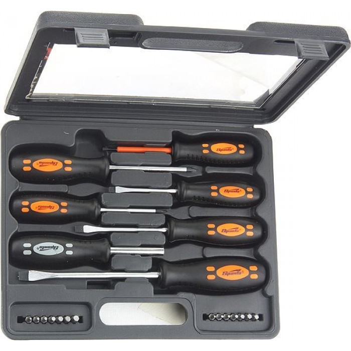 Набір викруток, біти, двокомпонентні рукоятки, 21 предмет// SPARTA