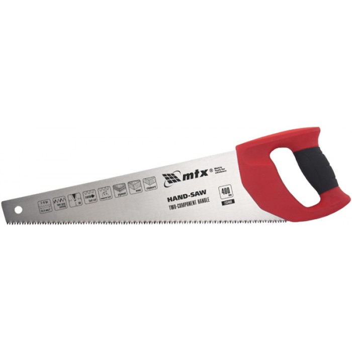 Ножівка по дереву, 450 мм, 7-8 TPI, зуб - 3D, гартований зуб, двокомпонентна рукоятка// MTX